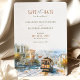 Establece el tono para tu próxima boda con el encanto y la emoción de la Ciudad por la Bahía con nuestra invitación de "Aventura en el Tranvía de San Francisco" para guardar la fecha. Con un icónico tranvía de cable frente a un telón de fondo de las colinas onduladas y la arquitectura histórica de San Francisco, esta tarjeta captura la esencia de esta vibrante ciudad. El diseño de acuarela con sus tonos de oro terroso, rojo tranvía y azul océano encarna la naturaleza ecléctica y llena de vida de San Francisco. La elegante tipografía en coral y la tipografía limpia de carbón complementan la escena, creando un comienzo sofisticado y aventurero para tu viaje de boda.
