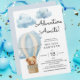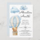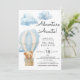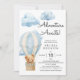 Esta encantadora invitación a la ducha para bebés presenta un diseño acuático con colores suaves y un ambiente agradable, ideal para celebrar la llegada de un niño pequeño. La pieza central de la invitación es un oso de peluche sobre un globo de aire, simbolizando la aventura que espera. Diseñado por diseños SweetFind