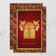 Invitación a la boda china de doble felicidad. Con tema rojo y oro y 2 Aves amorosas. Los chinos a menudo usan ideogramas -el idioma chino equivalente a las palabras- para hacer arte que tenga significado emocional y psicológico. Un elemento que se ve a menudo se llama "Doble felicidad". Se supone que traerá una doble dosis de felicidad a todos sus alrededor. Se ve comúnmente en los bodas y es un típico regalo boda para traer felicidad al nuevo sindicato. Ver tarjetas RSVP