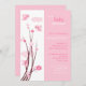 Invitación de Baby Shower. Pájaros rosas y flores primaverales.