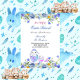 Una elegante invitación decorativa "Happy Easter" para un brunch de Pascua. El ilustracion tiene un borde floral y un conejo de Pascua con cáscara de huevo. El lado inverso tiene un patrón coincidente. El TEXTO se puede personalizar fácilmente con la elección de palabras y tipos de letra.
