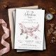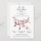 Una invitación de baby shower de avión antiguo con una delicada ilustración de un avión estilo libro de cuentos atada con lazos de cinta suave y la frase Que comience la aventura. Los tonos rosados suaves y la ilustración inspirada en reliquias crean una encantadora invitación perfecta para celebrar a un nuevo bebé y el emocionante viaje que se avecina. Diseñada con una estética clásica de guardería, esta invitación es adecuada para baby showers temáticos de aviones, celebraciones inspiradas en viajes y reuniones dulces que dan la bienvenida a un pequeño aventurero. Disponible para imprimir, como descarga digital o ambos.