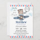 Invitación Avión azul de oso lindo vuelo Un primer cumpleaños