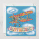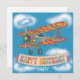 Invitación Avión volando sobre banner de feliz cumpleaños