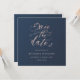 Diseñado para coordinar con nuestra colección de follaje azul marino y rosa, esta invitación personalizable de guardar la fecha cuadrada presenta un aviso de guardar la fecha rosa claro en una fuente de escritura con follaje en un fondo azul marino. Para una personalización más avanzada de este diseño, por ejemplo, cambiar el diseño, la fuente o el tamaño del texto, haga clic en el botón "PERSONALIZAR" arriba.