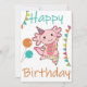 Saludo de cumpleaños Feliz cumpleaños con globos y Axolotl por cumpleaños para los niños. Una tarjeta divertida y colorida para el cumpleaños de los niños. A los amigos les encanta el Axolotl.