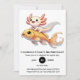 A cheerful axolotl riding a golden koi fish, capturing a whimsical underwater fantasy with playful charm.