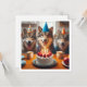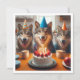 Un ilustracion muy agradable de lobos felices celebrando con pasteles y gorras fiestas. Esta es una gran invitación para los amantes del lobo, los amantes del perro y los amantes de la naturaleza, cualquiera que ame al aire libre. La tarjeta puede ser completamente editada y personalizada para satisfacer sus necesidades.