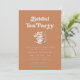 Invitación a una pieza de té con ducha de novia. Una temática retro de la moda: adopta este diseño tipográfico vintage y de diseño para tu papelería de ducha, con una temática de color azúcares marrones. Fácil de mezclar y emparejar con nuestra papelería similar disponible en naranja quemado, terracota y rosa melocotón. Personalizable completamente los colores y fondos de texto.