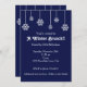 Invitación azul de copos de nieve colgando blancos de invierno. Personalizar para cualquier evento.