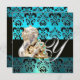 INVITACIÓN AZUL AGUAMARINA NEGRO, BLANCO JEWEL MONOGRAMA DAMA