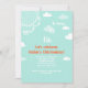 Invitación azul arriba, arriba y fuera de ella