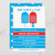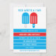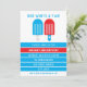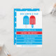 Invitación Patriótica de Blanco Rojo y Azul a los Dos Años con helados de pópsiques y estrellas y diseño de rayas.