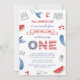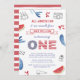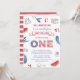 Invitación Azul Blanco Rojo Virtual Primer Fiesta de cumpleañ