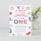Un diseño de invitación de primer cumpleaños de estrellas y rayas de larga distancia adecuado para un niño, chica o incluso gemelos.