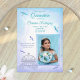 Esta invitación de Quinceañera azul claro y turquesa tiene un carruaje de caballo brillante y libélulas revoloteando. Explora las tarjetas de respuesta, sobres, etiquetas y pegatinas que coinciden con esta colección. Agrega fácilmente tu foto y transfiere este diseño caprichoso de libélula azul y carruaje de caballo a otras tarjetas y regalos. Esta plantilla de invitación es versátil para temas de colores azul polvoriento y cian claro.