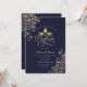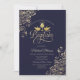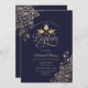 Elegante cáliz dorado y encaje dorado sobre fondo azul marino con toque dorado.