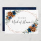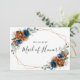 Elegante azul marino, terracota , Naranja temática de la tierra floral Will You My Maid of Honor Invitation con elegante ramo de azul marino, rosas de color terracota y hojas de eucalipto verde. Comuníquese conmigo para obtener ayuda sobre la personalización o si necesita cualquier otro producto con este diseño.