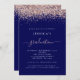 Invitación Azul de la Marina Purpurina de Oro Rosa de Graduac