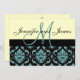 Invitación azul de marfil de la boda del damasco