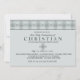 El fondo azul suave tiene un borde superior de una intrincada cinta cruzada recortada en verde azulado oscuro. Apropiado para cualquier celebración religiosa.