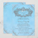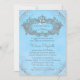 Invitación de cumpleaños de princesa de cuento de hadas con brillo azul y plateado con elegante marco de corona con brillo plateado sobre un hermoso fondo azul y plateado de Cenicienta. Puede personalizar fácilmente esta invitación de cumpleaños de princesa de cuento de hadas azul y plateada para su evento simplemente agregando sus datos en el estilo de fuente y color, y redacción que prefiera. Todos los diseños son gráficos impresos sin joyas reales, lazos, brillo, etc.