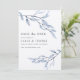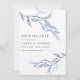 Guardar la fecha de la boda botánica moderna en azul pastel desvaído acuarela presenta follaje azul en el lado izquierdo enmarcando sus nombres y detalles de la boda.