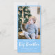 Cute estamos esperando la tarjeta de Invitación de embarazo fotográfico Gran Hermano con azul en la parte trasera.