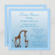 Invitación Azul lindo Baby Shower de la jirafa de la mamá y