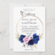 Invitación Azul Marino | Boda floral rosa Rubor azul real