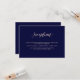 Estas sencillas y minimalistas tarjetas de información de la recepción de la boda tienen caligrafía rosa sobre un fondo azul marino. Puedes utilizarlas para incluir cualquier información de la recepción que tus invitados necesiten saber.