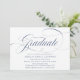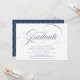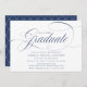 Elegantes invitaciones a fiestas de graduación con "Graduado" en un guión moderno de caligrafía marina. Personalice las invitaciones a la fiesta de graduación de la marina agregando el nombre del graduado, el año de graduación, el nombre de la escuela y los detalles de la fiesta de graduación. La fiesta de graduación de moda invita a revertir la vista para mostrar un patrón de enrejado blanco con un fondo marino.