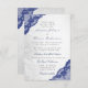 Invitación Azul Marino Gris Plateado Encaje Boda Delicada