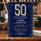 Esta fabulosa invitación a la fiesta de cumpleaños 50 de los hombres de oro y azul marino que incluye el número 50 en oro con fuentes modernas y lados purpurinas de oro en el frente y una fabulosa foto en la parte de atrás sería perfecta para pedirle a la gente que se una a ustedes mientras celebran al hombre en el cumpleaños 50 de su vida. Es tradicional y clásico, fresco, moderno y contemporáneo. Para ver sus invitaciones únicas, seleccione "Personalizar esta plantilla" y escriba su información. ¡Es muy fácil!