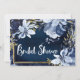 Invitación Azul Marino y Dorado Elegante Floral Acuarela Mode