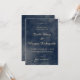 Esta sofisticada invitación de boda presenta un diseño elegante con un fondo de acuarela azul lujoso, complementado con acentos dorados elegantes. Las fuentes formales y clásicas utilizadas realzan la elegancia general de la invitación, haciéndola perfecta para una boda romántica y atemporal. Los detalles se presentan claramente, con un número de contacto de RSVP proporcionado para la conveniencia de los invitados. Esta invitación captura hermosamente la esencia de una celebración de boda moderna y de inspiración vintage.
