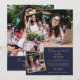 Invitación Azul Marino y Dorado Fiesta de Graduación de 5 Fot
