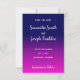 Se puede cambiar el color azul marino detrás de la imagen oscura rosa caliente para que coincida con la paleta boda o el color favorito. Pruebe con estilos de fuente o color cursivos diferentes. Esta muestra tiene un estilo de escritura a mano cursiva moderna. Crea tu propia invitación personalizada a guardar la fecha.