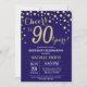 Invitación de cumpleaños 90 con fondo de diamante Purpurina azul y oro de la Marina. confetti de efecto metalizado dorado. Cumpleaños de adultos. Cumpleaños de hombres o mujeres. Para una mayor personalización, haga clic en el botón "Personalizar" y utilice nuestra herramienta de diseño para modificar esta plantilla.