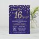 Invitación de cumpleaños 16 con fondo de diamante Purpurina azul y oro de la Marina. confetti de efecto metalizado dorado. Cumpleaños de niños. Cumpleaños de niño o Chica. Para una mayor personalización, haga clic en el botón "Personalizar" y utilice nuestra herramienta de diseño para modificar esta plantilla.
