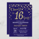 Invitación Azul marino y oro Diamante de 16 cumpleaños
