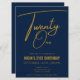 Invitación Azul marino y oro Veintiún cumpleaños número 21