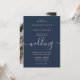 Invitación Azul marino y Rubor foto Boda de escritura moderna