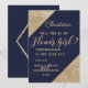 Elegantes, chic y glamurosas esquinas de lentejuelas doradas impresas y letras doradas en un fondo azul marino, "¿Quieres ser mi dama de honor?" Invitaciones para dama de honor. Este diseño clásico y sofisticado es perfecto para la novia moderna y elegante que quiere hacer que su dama de honor se sienta especial y querida. Personalice con su propio mensaje en la parte delantera, así como una inicial monograma personalizada en la parte posterior. Todo el diseño es impresión fotográfica.