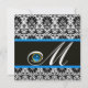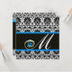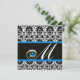 Invitación AZUL NEGRO BLANCO DAMASCO MONOGRAMA Zafiro