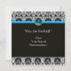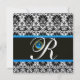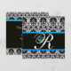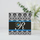 Invitación AZUL NEGRO BLANCO DAMASCO MONOGRAMA Zafiro Oro