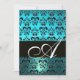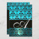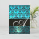 Invitación AZUL NEGRO DAMASCO MONOGRAMA ,blanco brillante tu