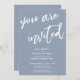 La distinción de este conjunto se debe a la fuente moderna de letra manuscrita utilizada para las frases de acento. En esta pieza, se utilizó la fuente de letra manuscrita para crear un gráfico que representa las palabras "you are invited". Utilice los campos de la plantilla para agregar sus datos personales y hacer que este diseño moderno y único sea suyo. El fondo azul polvoriento se puede cambiar a cualquier color que prefiera. Por favor, comuníquese con nosotros para cualquier solicitud especial o para obtener ayuda para personalizar. // 100 //