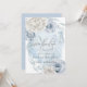 Invitación Azul Polvoriento Marfil Elegantes Flores Rústicas