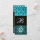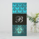 Invitación AZUL PURPURA NEGRO DAMASCO MONOGRAMA, blanco turq